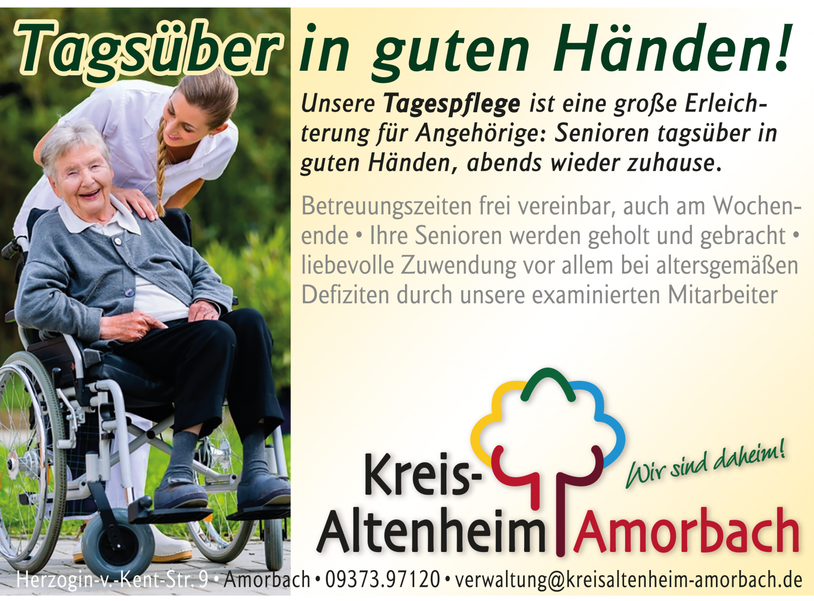 Das Kreisaltenheim Amorbach ist zusammen mit dem Seniorenwohnstift Erlenbach die größte Einrichtung für altersgerechtes und betreutes Wohnen in der Region. Die beiden Häuser zählen seit fast 10 Jahren zu unseren Kunden. Neben der völligen Neugestaltung des Erscheinungsbildes wird vor allem über den Weg eng regional gestreuter Anzeigen das hohe Image der Häuser gepflegt. Dazu zählen auch die Gestaltung von Großflächen und Fahrzeugen wie z.B. Linienbusse.